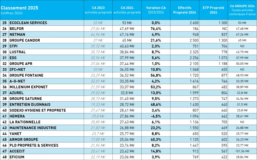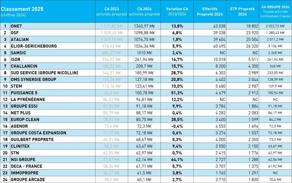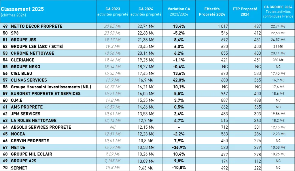 Top 70 des entreprises de propreté - édition 2025